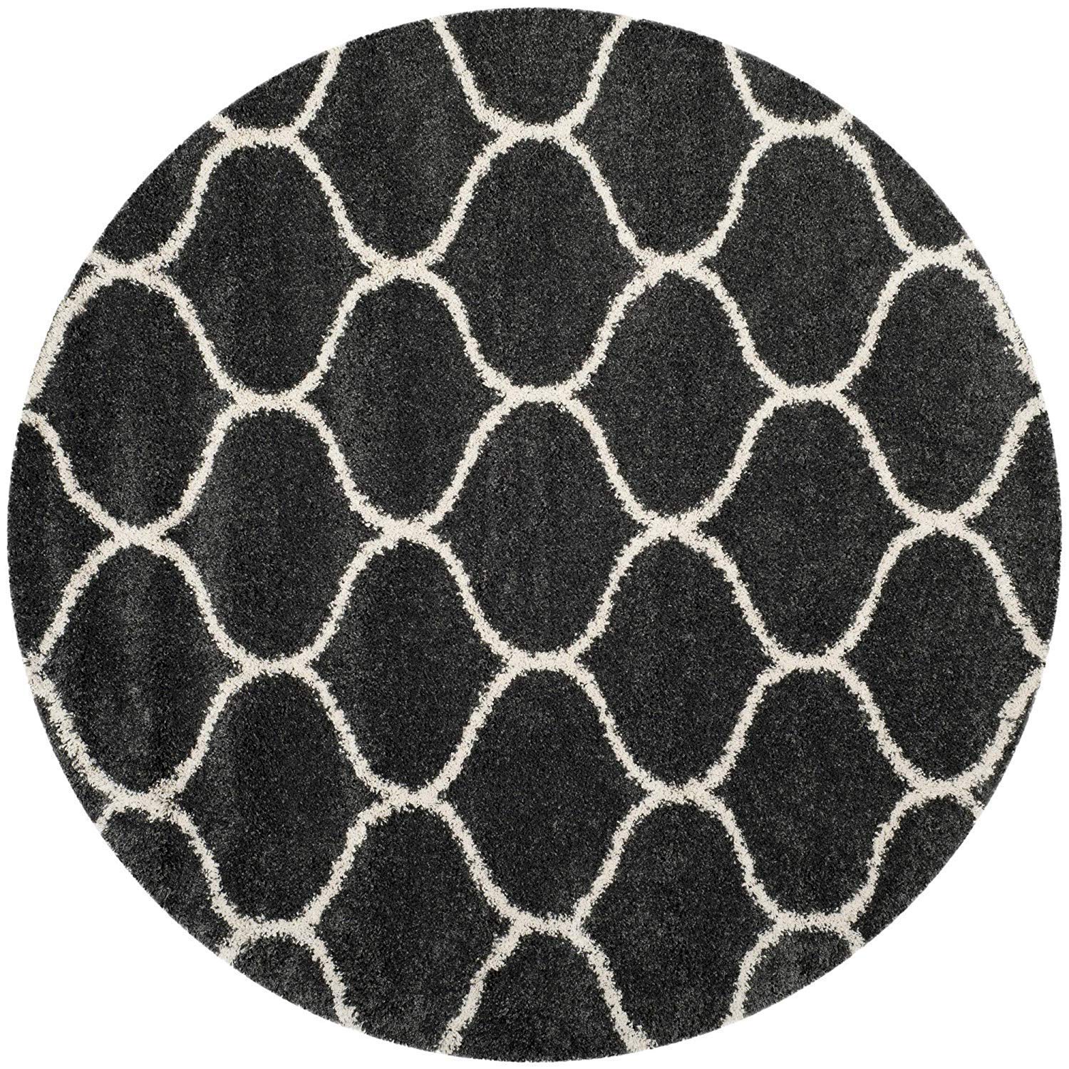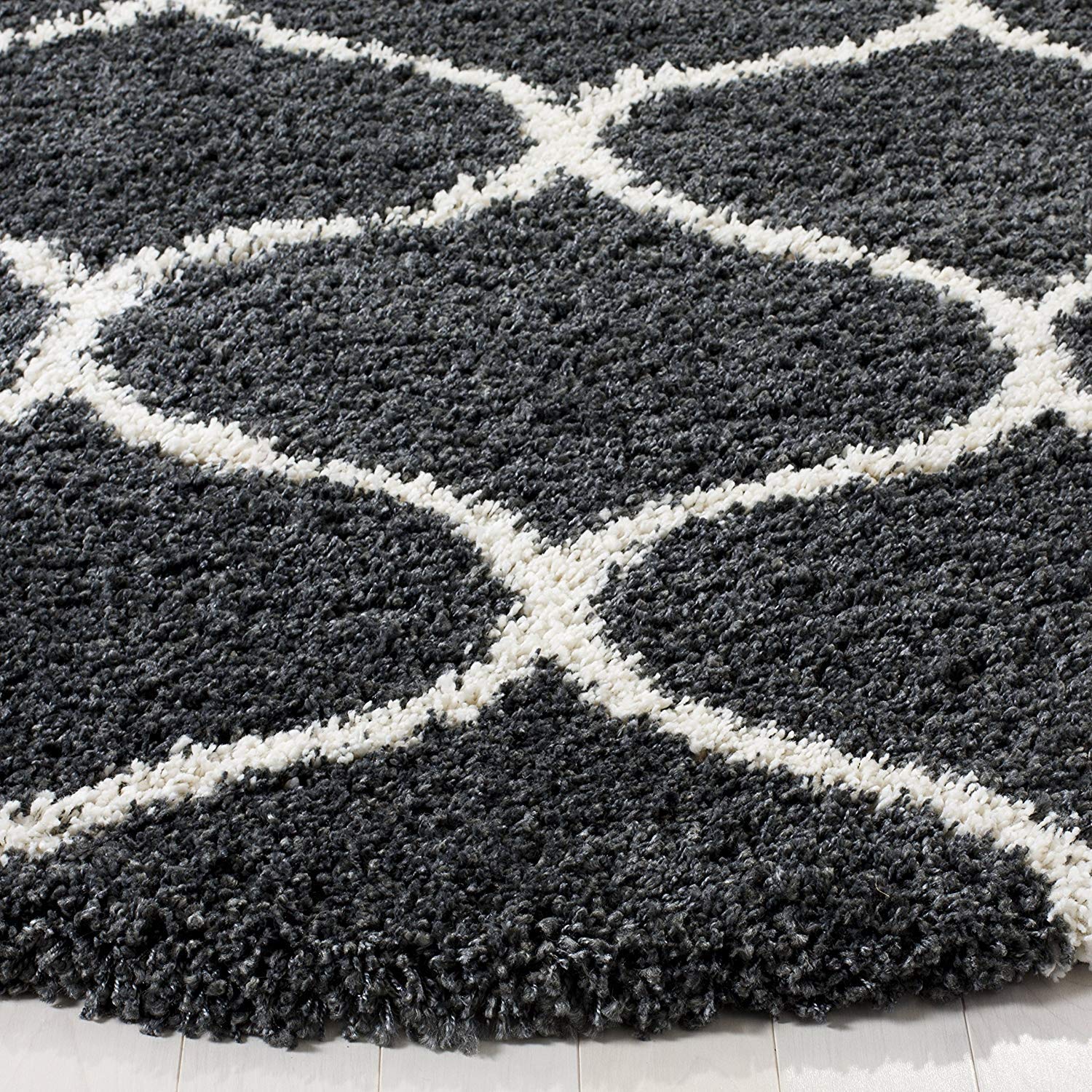Luxury Hand-Tufted Diamond Shaggy Rug – Grey with Ivory – Soft Feel & Anti-Skid Rubber Backing