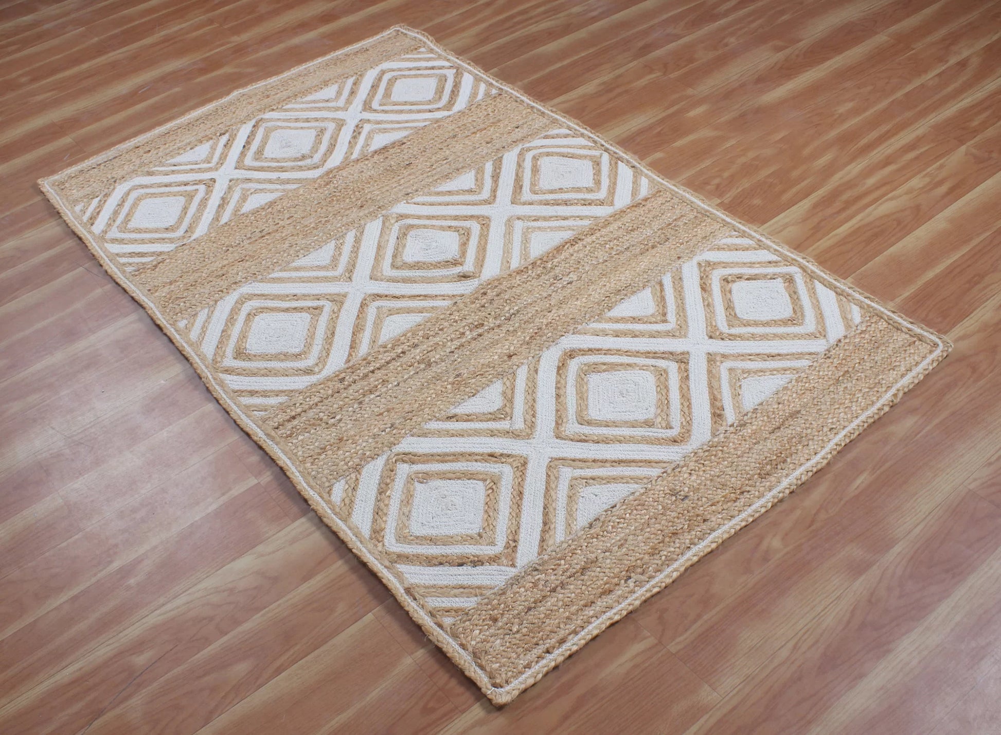 Paddle Weaving WHITE AND BEIGE Natural Jute Carpet