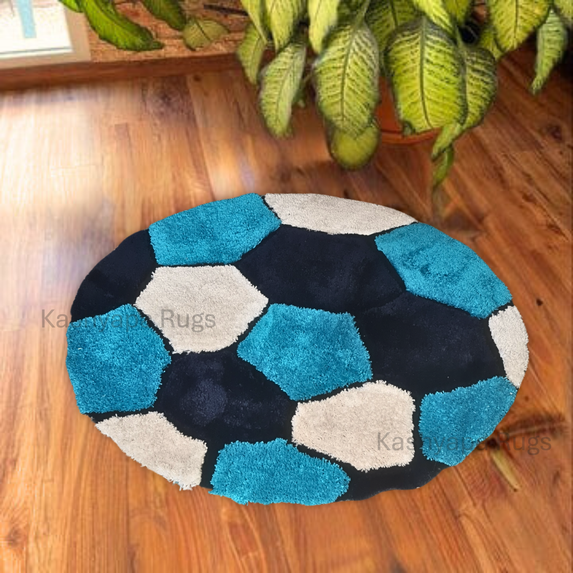 Premium Colour Combo Shaggy Football Rug – Soft Touch with Anti-Skid Rubber Backing