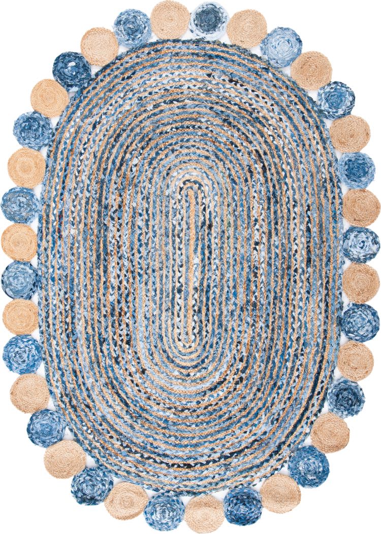 Jeans With Jute Round Tikki Oval Shaped Rug.