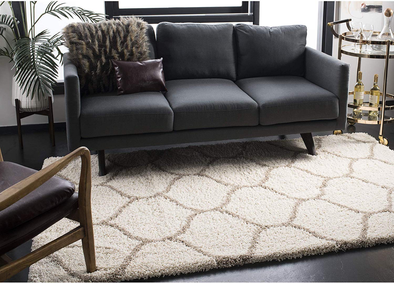 Premium Ivory & Grey Lining Moroccan Fluffy Rug – Key Features: