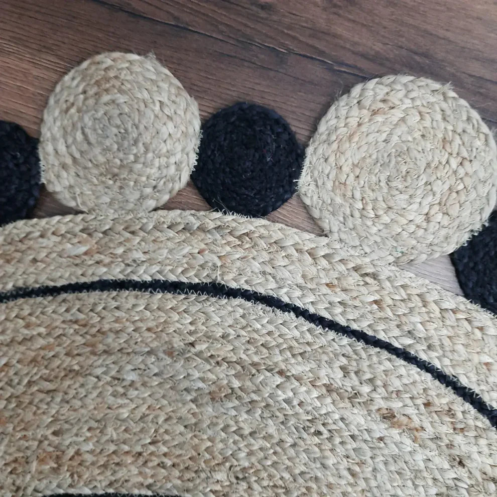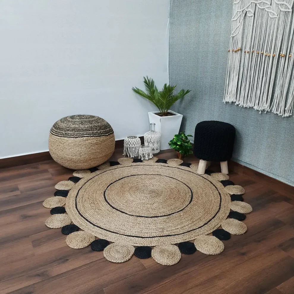 Natural Jute With Black Round Tikki Border Braided Carpet .